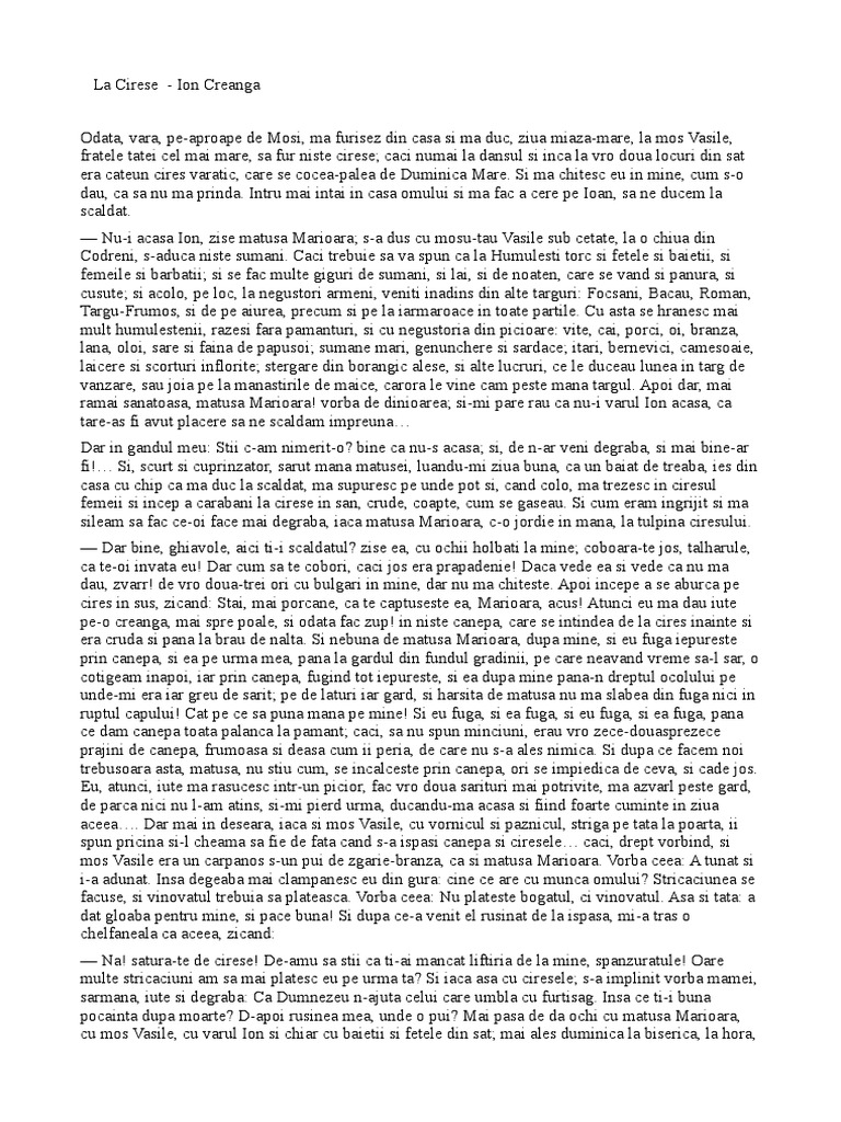 Alții să i nividească și să înceapă a i țese din nou. Enjoy the videos and music you love upload original content and share it all with friends family and the world on youtube. La cirese de ion creanga va oferim spre lectura la cirese o intamplare inedita povestita de scriitorul ion creanga autorul volumului amintiri din copilarie. La cirese de ion creanga odată vara pe aproape de moşi mă furişez din casă şi mă duc ziua miaza mare la moş vasile fratele tatei cel mai mare să fur nişte cireşe.