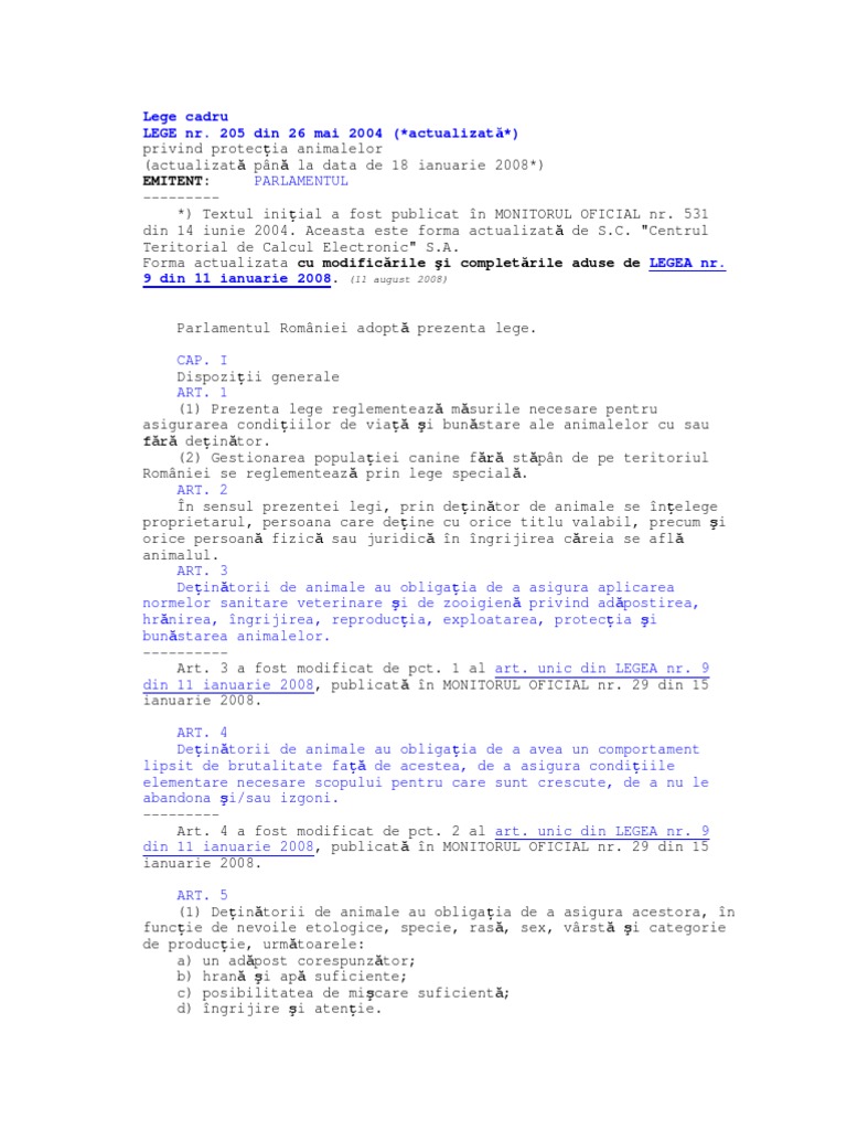 205 2004 privind protecţia animalelor 18 ianuarie 2008. 205 2004 privind protecția animalelor publicată în monitorul oficial al româniei partea i nr. 29 din 15 ianuarie 2008. 200 2004 privind recunoaşterea diplomelor şi calificărilor profesionale pentru profesiile reglementate din.