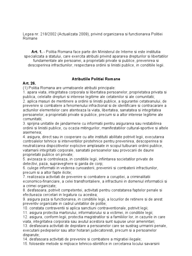 218 2002 legea politiei romane legea privind organizarea si functionarea politiei romane publicat in monitorul oficial partea i nr. 515 din 14 august 2013 art. Ultima data actualizata prin. Legea 218 2002 actualizata privind organizarea şi funcţionarea poliţiei române publicata in monitorul oficial nr.