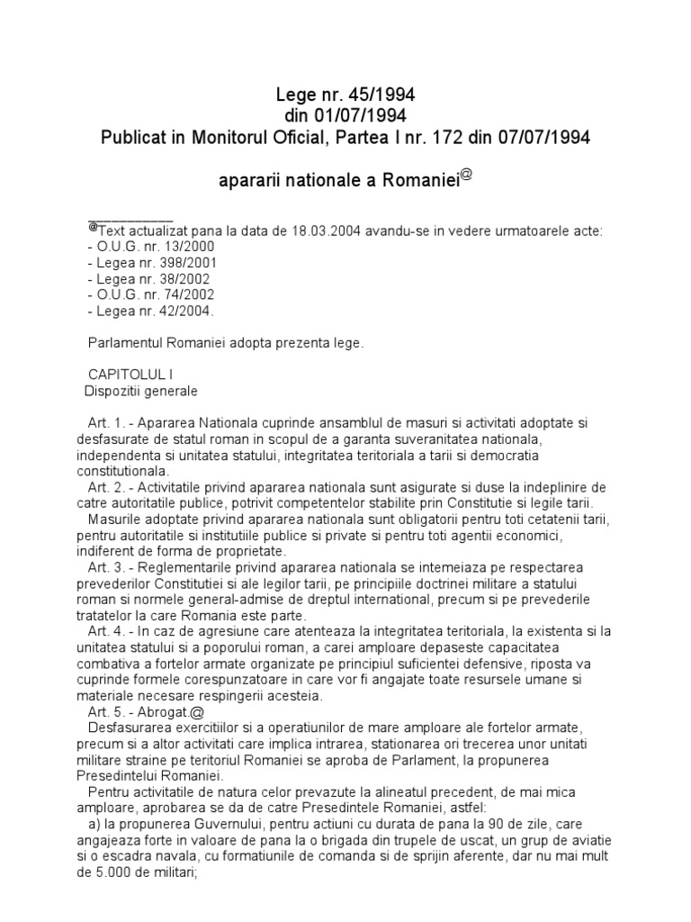 Acest act a fost creat utilizand tehnologia sintact acte sintetice. Lege nr 45 din 1 iulie 1994 actualizata legea apararii nationale a romaniei actualizata pana la data de 18 noiembrie 2003 emitent. I din legea nr. Sintact şi tehnologia acte sintetice sunt mărci inregistrate ale wolters kluwer.