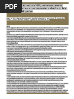 2 din legea nr. Legea 61 1991 actualizata 2016 pentru sanctionarea faptelor de incalcare a unor norme de convietuire sociala a ordinii si linistii publice si in format pdf. 3 noi infracțiuni în legea nr. 174 2013 publicată în monitorul oficial al româniei partea i nr.