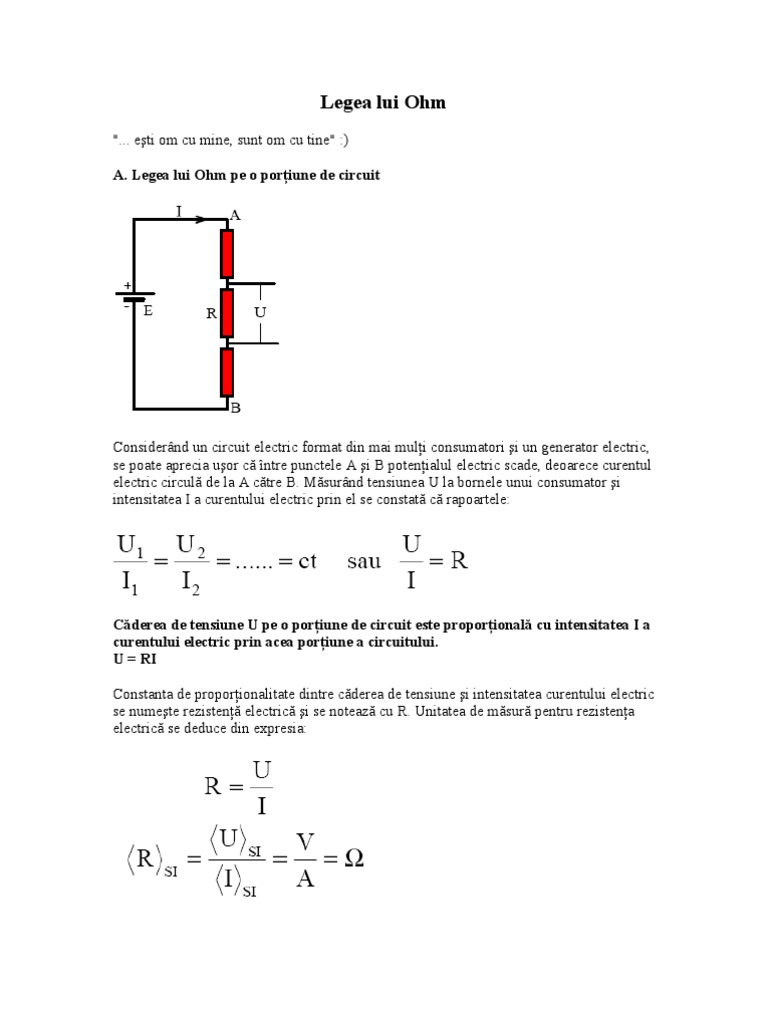 Legea lui ohm pentru un circuit intreg. U ri şi u ri şi după înlocuiri se obţine. Legea lui ohm se aplică pentru conductori electrici la capetele cărora se aplică tensiuni electrice.