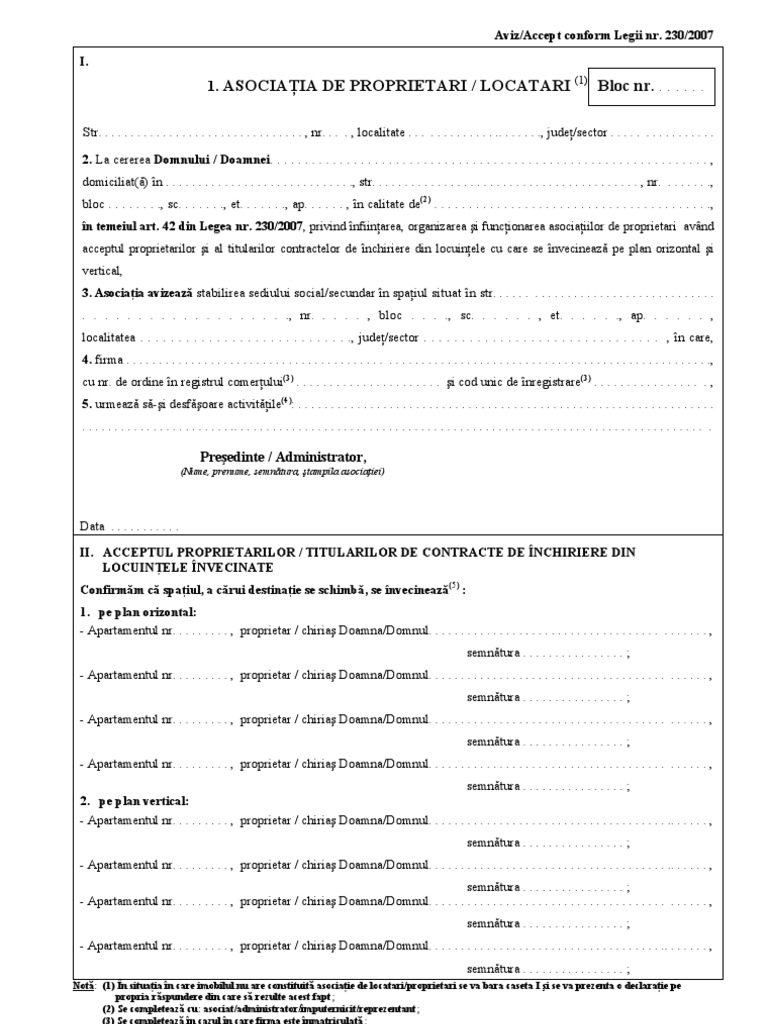 174 din 08 martie 2016 legea 230 2017 a fost abrogata prin legea 196 2018 noua lege a. 230 2007 dupa caz cu obligatia proprietarului de a declara in scris numarul persoanelor angajate sau care desfasoara activitati in spatiul sau. Legea 230 2007 privind înfiinţarea organizarea şi funcţionarea asociaţiilor de proprietari publicată în monitorul oficial nr. 1 din legea nr.