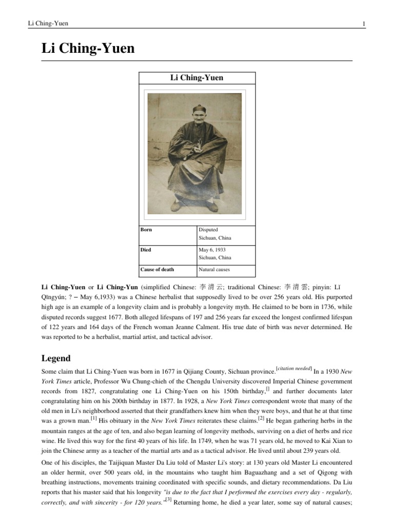 His final words are recorded as. Li ching yuen spent most of his life in the mountains and was. Lǐ qīngyún died 6 may 1933 was a chinese herbalist martial artist and tactical advisor known for his supposed extreme longevity. Li ching yuen or li ching yun simplified chinese.