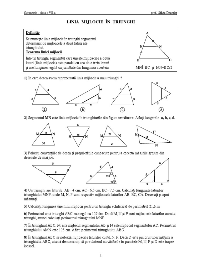 Despre linia mijlocie intr un triunghi. Perimetrul triunghiului echilateral este egal cu suma laturilor l l l 3l. Triunghiul este una dintre cele mai cunoscute figuri geometrice. Linia mijlocie într un triunghi este segmentul care unește mijloacele a două laturi.