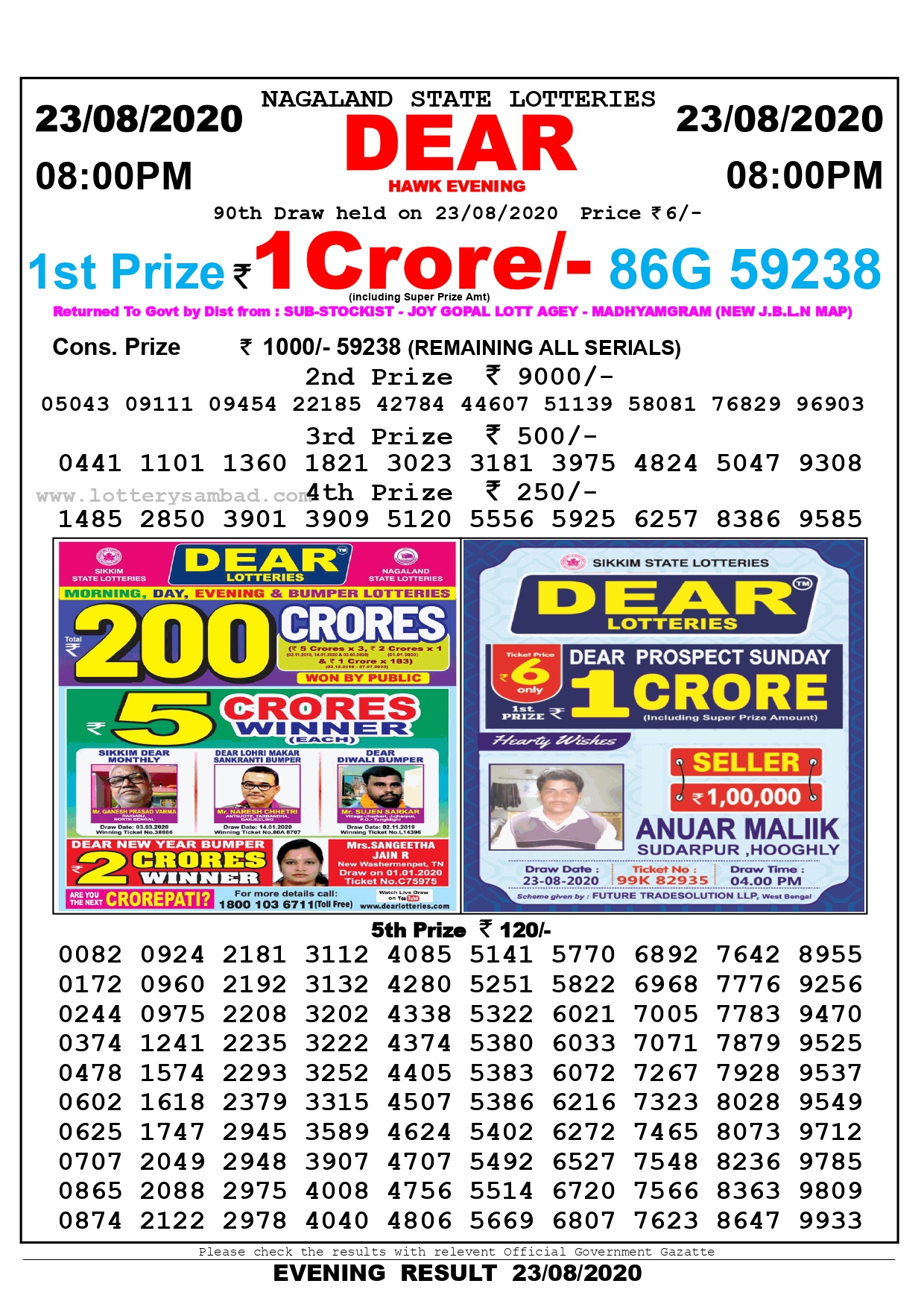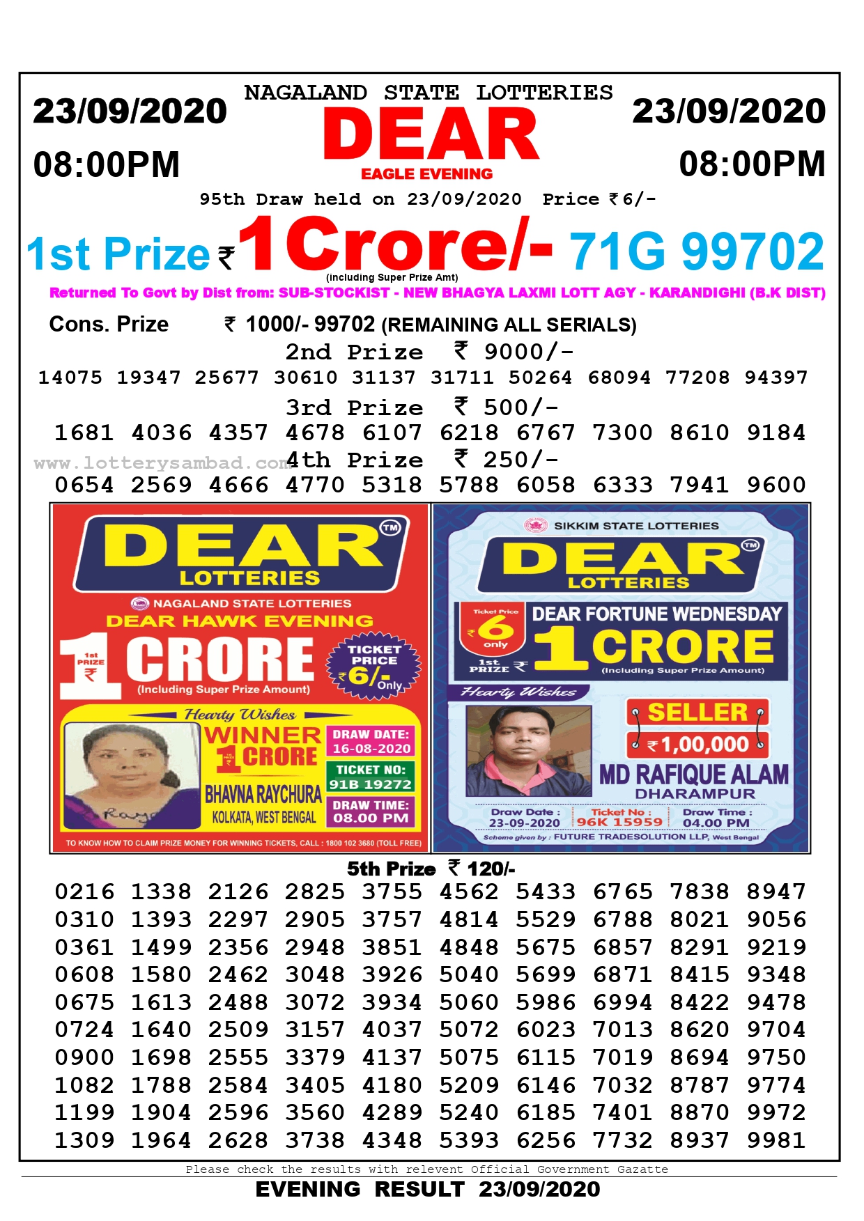Today lottery sambad results 04 11 2020. Contenders when you start play lottery sambad draws then first collect branded tips bumper tricks single double final number pairs from this website. As we know that lotteries are playing state to state in this fastest growing country. Dear torsa morning at 11 55 am dear mercury wednesday at 4 pm dear eagle evening at 8 pm dear 2000 lottery results 2nd draw on 17 10 2020 at 4 30 pm nagaland state lottery sambad 20 09 2020 today result 8 pm.